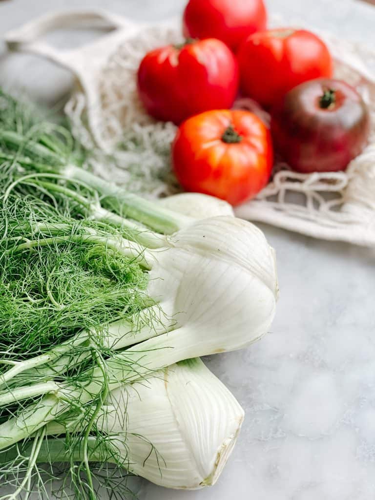 Have you ever passed by a display of fennel and wondered "what ever would I do with that"? Guess what? You are not alone! A recent survey on my instagram revealed that 88% of respondents weren't sure how to slice fennel. Fennel can be an intimidating vegetable to cut into, but it is absolutely worth it. Fennel has an almost sweet, subtle licorice taste that makes for a delicious snack eaten on it's own or, my favorite, as part of a crunchy summer salad like in this 2 ingredient raw Fennel and Tomato Salad.